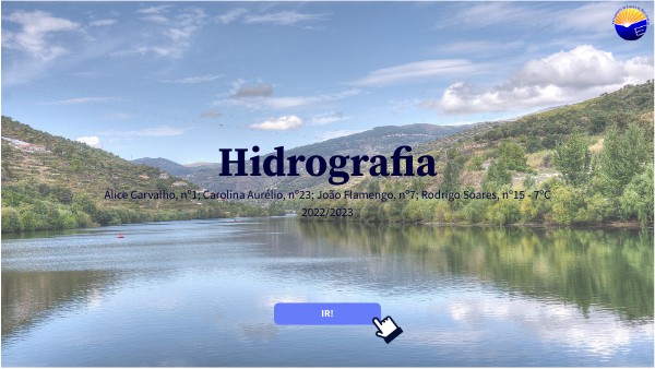 Este trabalho foi realizado no âmbito da disciplina de Geografia, insere-se no estudo do relevo e foca-se, em particular, na hidrografia. Pretendemos com ele dar a conhecer os principais rios de Portugal e do mundo, bem como aspetos relativos às redes e às bacias hidrográficas, indo ao encontro das aprendizagens essenciais da disciplina para o 7º ano, que dão grande importância à compreensão do espaço natural. Usámos a plataforma Genially para o executar, o que nos permitiu conhecer esta interessante ferramenta digital.