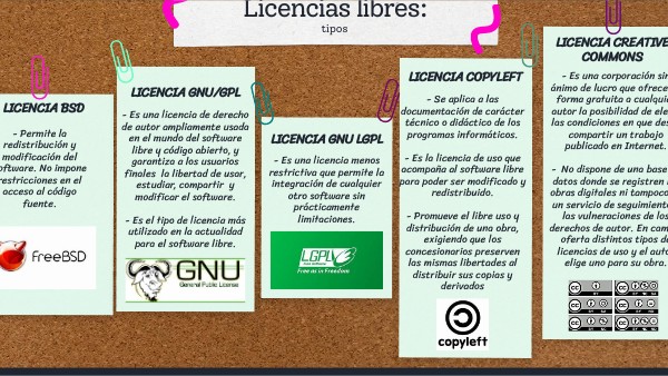 - Se aplica a las documentación de carácter técnico o didáctico de los programas informáticos. - Es la licencia de uso que acompaña al software libre para poder ser modificado y redistribuido. - Promueve el libre uso y distribución de una obra, exigiendo que los concesionarios preserven las mismas libertades al distribuir sus copias y derivados