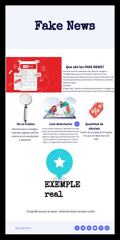 Principal-ment les Fake News són: Noticies, imatges o missatges falsos que no són veritat i la gent se’ls creu.