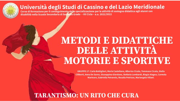 LEZIONE GUIDATA DA ESPERTI ESTERNI INCENTRATA SU PASSI E FIGURE COREUTICHE SEMPLICI PER APPRENDERE I MOVIMENTI BASE DELLA PIZZICA. GLI ESERCIZI SARANNO ELEMENTARI E NON PARTICOLARMENTE STRUTTURATI IN MODO DA NON COSTITUIRE PER MARTA ATTIVITà LIMITANTE/BARRIERA.