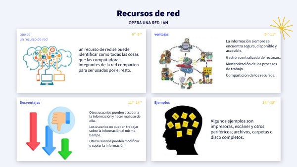 un recurso de red se puede identificar como todas las cosas que las computadoras integrantes de la red comparten para ser usadas por el resto.