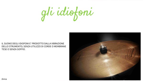 IL SUONO DEGLI IDIOFONI E' PRODOTTO DALLA VIBRAZIONE DELLO STRUMENTO; SENZA UTILIZZO DI CORDE O MEMBRANE TESE O SENZA SOFFIO.