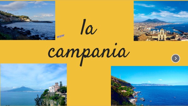 Il territorio della Campania è molto vario.La parte interna della regione è occupata dall'Appennino Campano,mantre più a sud si trovano i Campi Flegrei, colline formate da vulcani spenti, e il Vesuvio, un vulcano quiescente.Vicino alla costa si estendono le pianure principali, come la pianura campana, attraversata dal fiume Volturno, è la piana del Sele. I laghi sono tutti di modesta portata, come il lago di San Pietro e il Lago di Marese. La costa e molto varia: spiagge basse e sabbiose si alternano ad altre alte e rocciose, formando golfi, promontori e penisole. Alla Campania appartiene l'Arcipelago Campano,con le isole di Procida, Ischia e Capri. Il clima della regione è prevalentemente mediterraneo, con estati calde e inverni miti; è invece di tipo appenninico sui rilievi, con nevicate invernali.