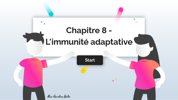 L'immunité adaptative se met en place après l'immunité innée. Elle est activée par les cellules présentatrices d'antigène, qui activent les lymphocytes présents des les ganglions lymphatiques.L'immunité adaptative est spécifique : la réaction immunitaire est dirigée contre un seul antigène. Si l'agent pathogène (toxine, bactérie) est présent librement dans les liquides de l'organisme, des molécules (appelées anticorps) vont permettre de les éliminer. Si l'agent pathogène est présent dans une cellule (virus, cellule cancéreuse), les lymphocytes vont permettre de les éliminer.