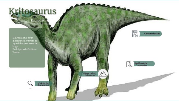 El Kritosaurus es un dinosaurio herbívoro de 2300 kilos y 9 metros de largo. Es del periodo Cretáceo Tardío.