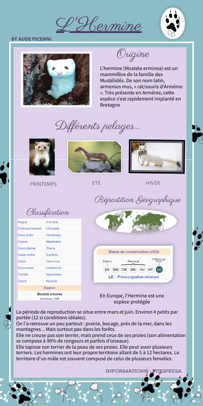 L'hermine (Mustela erminea) est un mammifère de la famille des Mustélidés. De son nom latin, armenius mus, « rat/souris d'Arménie ». Très présente en Arménie, cette espèce s’est rapidement implanté en Bretagne