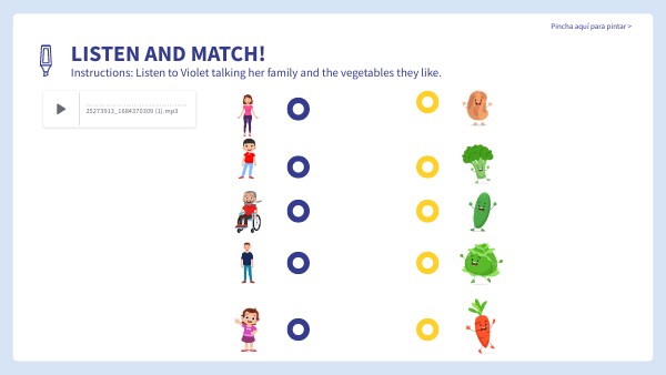 Instructions: Listen to Violet talking her family and the vegetables they like.