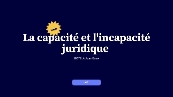 - La capacité et l'incapacité juridique.................p3 - La capacité juridique.........................................p5 - L'incapacité juridique........................................p7 - Les différents types d'incapacités juridiques...p9