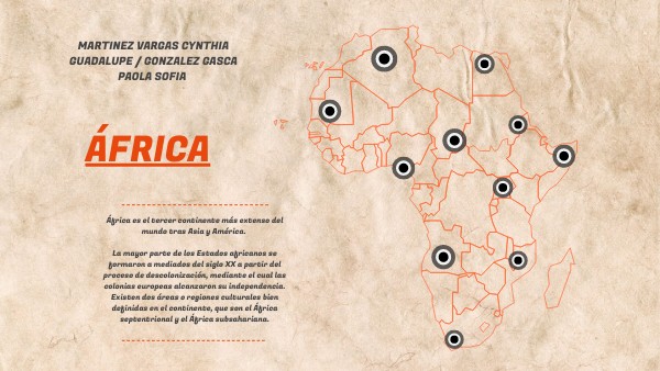 África es el tercer continente más extenso del mundo tras Asia y América. La mayor parte de los Estados africanos se formaron a mediados del siglo XX a partir del proceso de descolonización, mediante el cual las colonias europeas alcanzaron su independencia. Existen dos áreas o regiones culturales bien definidas en el continente, que son el África septentrional y el África subsahariana.