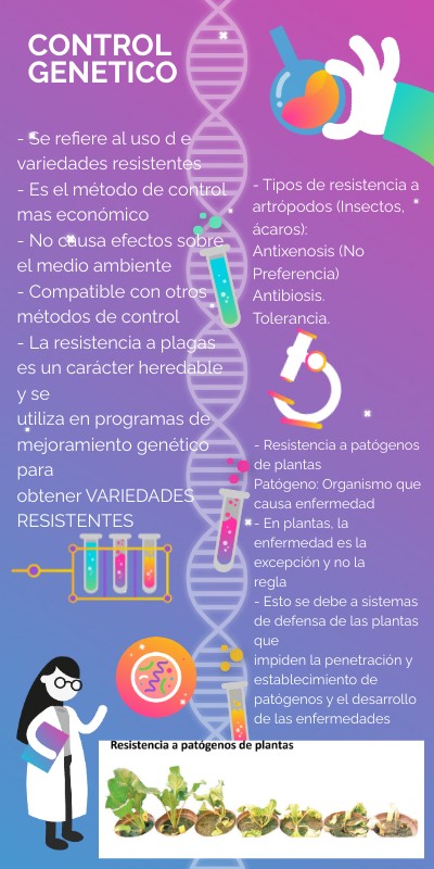- Se refiere al uso d e variedades resistentes - Es el método de control mas económico - No causa efectos sobre el medio ambiente - Compatible con otros métodos de control - La resistencia a plagas es un carácter heredable y se utiliza en programas de mejoramiento genético para obtener VARIEDADES RESISTENTES