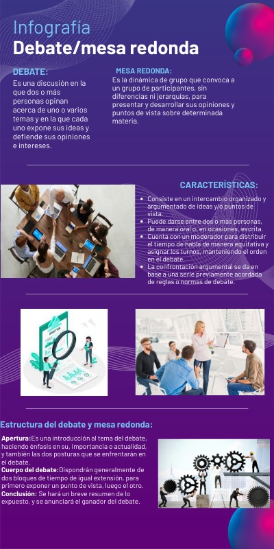 - Cuenta con un moderador para distribuir el tiempo de habla de manera equitativa y asignar los turnos, manteniendo el orden en el debate.