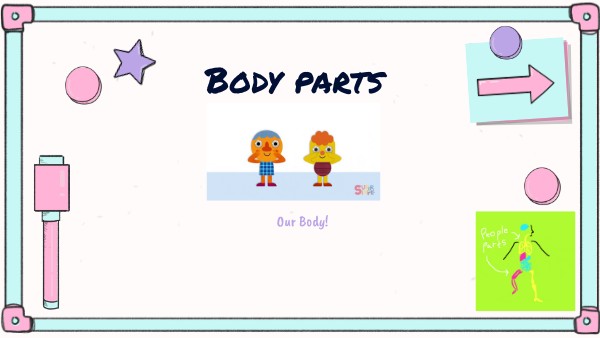 We will learn different body parts by watching videos, playing games and doing some fun activities.