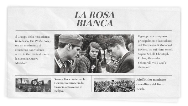 - nasce così la Rosa Bianca: movimento che diffonderà clandestinamente 6 opuscoli;