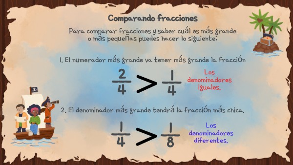 Para comparar fracciones y saber cuál es más grande o más pequeñas puedes hacer lo siguiente: