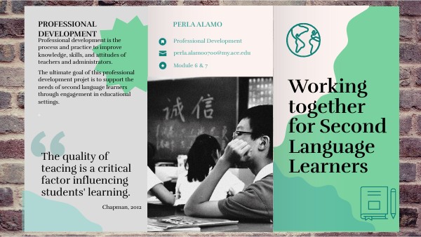 Professional development is the process and practice to improve knowledge, skills, and attitudes of teachers and administrators. The ultimate goal of this professional development projet is to support the needs of second language learners through engagement in educational settings.