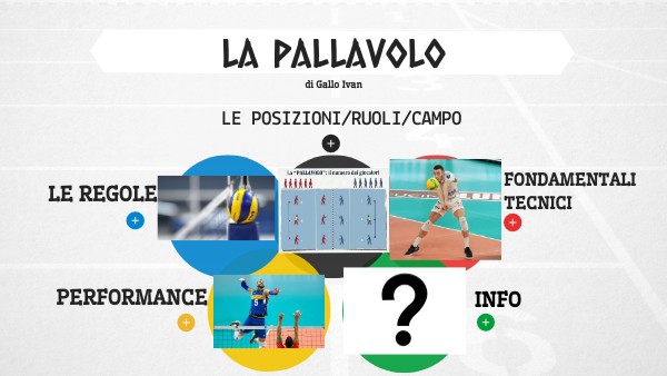 I ruoli si dividono in 5 ovvero: banda, opposto, alzatore, centrale e libero. Dato un ruolo ci si deve poi posizionare nella propria zona, che sono: la banda sta in p4 e p6, l'opposto sta in p1 e p2, l'alzatore sta in p1 e p2 però se si vuole può stare ache in p3 se non c'è il centrale, centrale p3 e p5 e il libero in p5