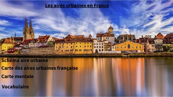 aire urbaine: espace constitué d'une ville-centre,de banlieues et d'une couronne périurbaine étalement urbain: étalement des banlieues et des zones périurbaines d'une ville pôle urbain: agglomération comptant 5000 emplois ou plus couronne périurbaine: ensemble des communes dont au mons 40% des actifs résidants vont travailler dans l'aire urbaine