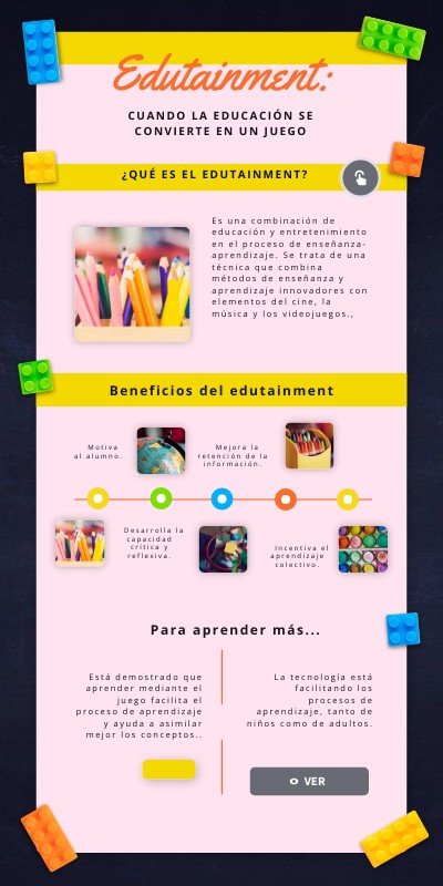 Es una combinación de educación y entretenimiento en el proceso de enseñanza-aprendizaje. Se trata de una técnica que combina métodos de enseñanza y aprendizaje innovadores con elementos del cine, la música y los videojuegos.,