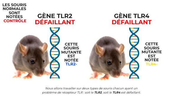 Nous allons travailler sur deux types de souris chacun ayant un problème de récepteur TLR : soit le TLR2, soit le TLR4 est défaillant.