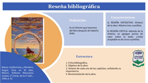 Baena, Guillermina, y Montero, Sergio, Tesis en 30 días, México, Editores Mexicanos Unidos, 2ª reimp. de la 2ª edic., 1988, p. 92