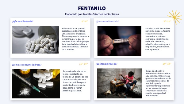 El fentanilo es un potente opioide agonista sintético utilizado como analgésico. Tiene una potencia superior a la morfina, por lo que se emplea a dosis más bajas que ésta, siendo el efecto final a dosis equivalentes, similar al de la morfina