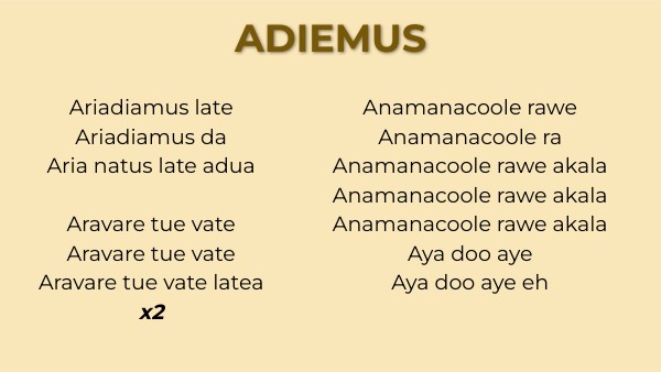 Ariadiamus lateAriadiamus da Aria natus late adua Aravare tue vate Aravare tue vate Aravare tue vate latea x2