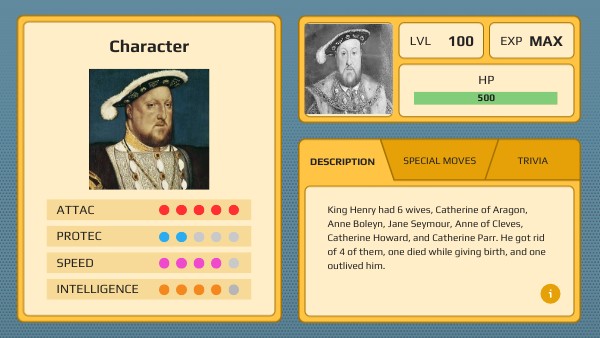 King Henry had 6 wives, Catherine of Aragon, Anne Boleyn, Jane Seymour, Anne of Cleves, Catherine Howard, and Catherine Parr. He got rid of 4 of them, one died while giving birth, and one outlived him.