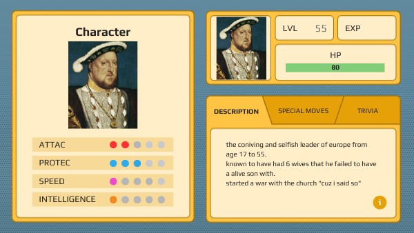 the coniving and selfish leader of europe from age 17 to 55.known to have had 6 wives that he failed to have a alive son with. started a war with the church "cuz i said so"
