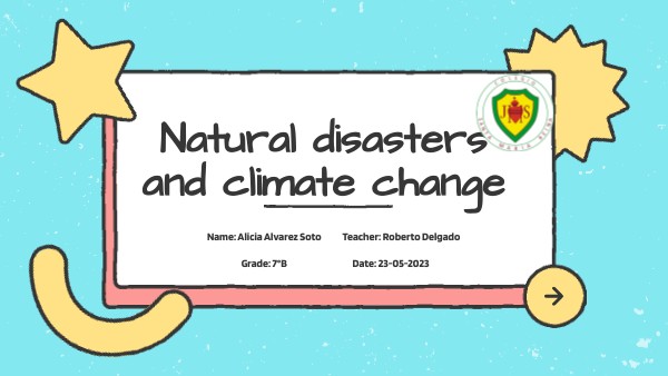 The Natural Disaster is a dangerous event that cause very serious injuries. The Climate Change is the clime variation, that variation is caused by natural causes and human causes. The drastic change of temperature cause not rain for days or weeks, or the heat is so high for a lot of days. We can stop using air spray for help the ozone layer, we don´t have to put oil in the sea; The Nature are hurting the earth and we can´t stop that but we are hurting the earth too, we can and have to stop that.