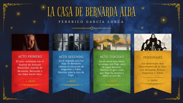 Los personajes más importantes de la obra son Bernarda, Poncia, Angustias y Adela.