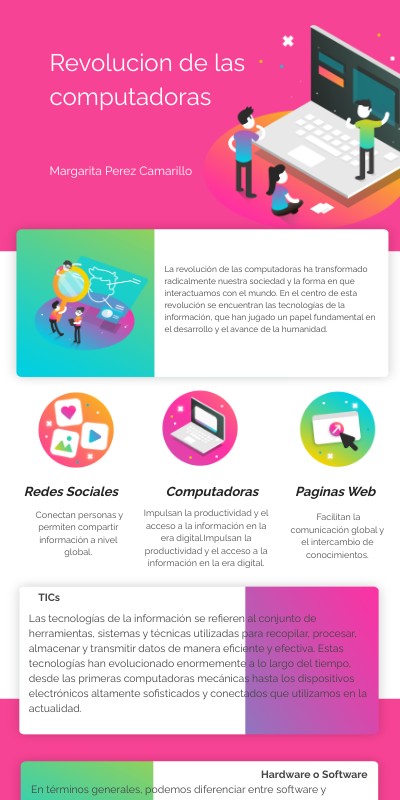 En conclusión, la revolución de las computadoras ha dado lugar a las tecnologías de la información, que han transformado la forma en que trabajamos, nos comunicamos y vivimos. La evolución constante de estas tecnologías ha permitido la creación de herramientas digitales poderosas que simplifican nuestras tareas y mejoran nuestra productividad. Tanto el software como el hardware desempeñan roles esenciales en este proceso, trabajando en conjunto para impulsar la innovación y el progreso en la era digital.