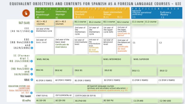 All Spanish language courses (primary and secondary school education or equivalent academic qualifications, e.g. FP)