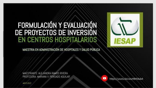 FORMULACIÓN Y EVALUACIÓN DE PROYECTOS DE INVERSIÓN EN CENTROS HOSPITALARIOS