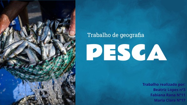 Neste trabalho vamos abordar o tema da pesca que é uma atividade muito antiga que consiste na extração de organismos aquáticos do meio onde se desenvolveram para diversos fins. Dentro deste tema vamos falar sobre como tornar a pesca mais sustentável, as observações que fizemos de diferentes tipos de peixe e o nosso questionário.