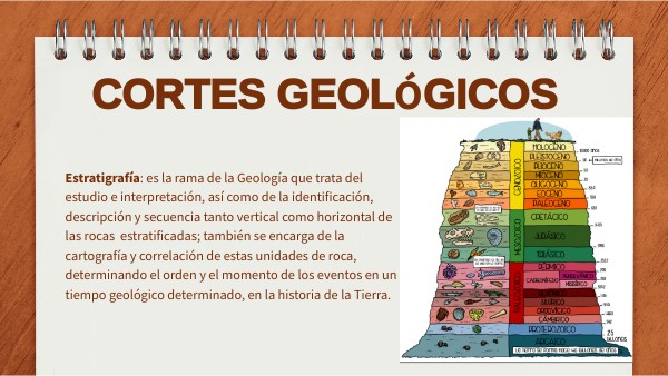 Interpreta el corte geológico indicando el orden cronológico de los materiales