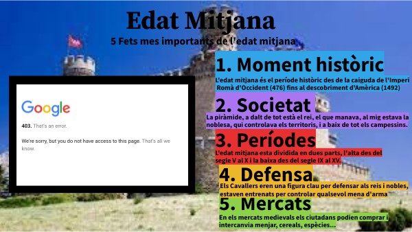 L'edat mitjana és el període històric des de la caiguda de l'Imperi Romà d'Occident (476) fins al descobriment d'Amèrica (1492)