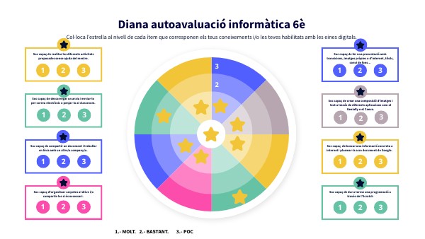 Col·loca l'estrella al nivell de cada ítem que corresponen els teus coneixements i/o les teves habilitats amb les eines digitals.