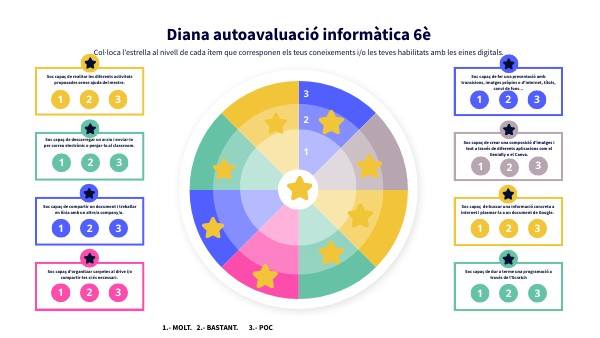 Col·loca l'estrella al nivell de cada ítem que corresponen els teus coneixements i/o les teves habilitats amb les eines digitals.
