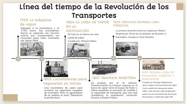 Aplicada a la locomotora y el 1.765 barco. Sus precedentes fueron la vagoneta con tracción animal que transportaban los minerales sobre railes. Inventado por James Watt