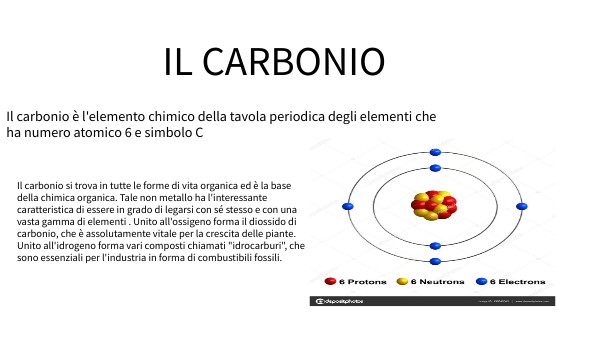 Il carbonio è l'elemento chimico della tavola periodica degli elementi che ha numero atomico 6 e simbolo C