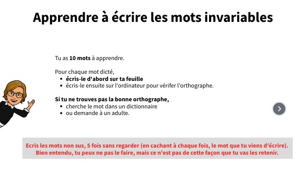 Tu as 10 mots à apprendre. Pour chaque mot dicté, - écris-le d'abord sur ta feuille
