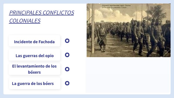 1 GUERRA En 1839, funcionarios chinos encabezados por el ministro Lin HseTsu requisaron todo el opio que estaban en poder de los comerciantes británicos y los expulsaron de China. En 1840 una flota británica llegó a las costas chinas y demandó la legalización del comercio del opio, el pago de una indemnización por las destrucciones de mercancías y apertura de nuevos puertos al comercio exterior. Esta derrota forzó al gobierno imperial a firmar el Tratado de Nankín, que obligó a China a asumir el libre comercio de opio.