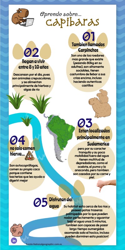 Son uno de los roedores mas grande que existe (pesando 80kg en su adultez), son altamente sociables, tienen costumbre de llebar a sus crias encima, incluso haciendo autenticos castillos