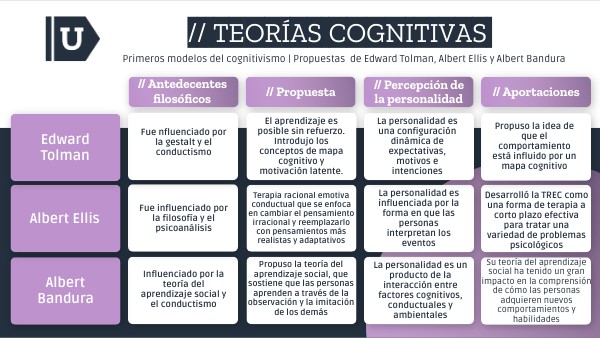 Primeros modelos del cognitivismo | Propuestas de Edward Tolman, Albert Ellis y Albert Bandura