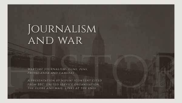 WARTIME JOURNALISM- Guns, pens, propaganda and cameras A presentation by nipun! (content cited from BBC, United service organisation, the globe and mail; links at the end)