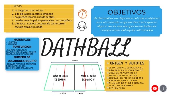 El dathball es un deporte en el que el objetivo es ir eliminando a oponentes hasta que en alguno de los dos equipos esten todas los componentes del equipo eliminados