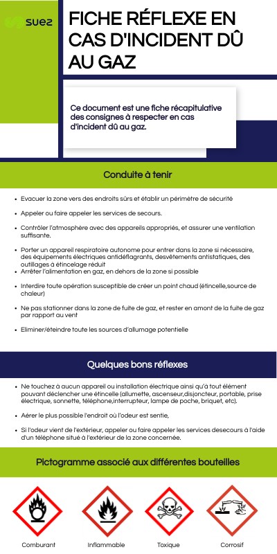 Ce document est une fiche récapitulative des consignes à respecter en cas d'incident dû au gaz.