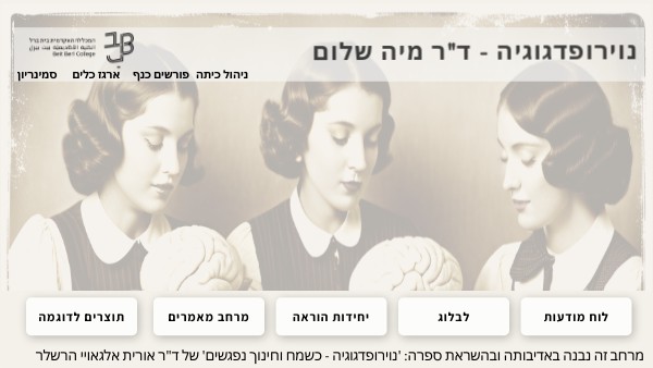 מרחב זה נבנה באדיבותה ובהשראת ספרה: 'נוירופדגוגיה - כשמח וחינוך נפגשים' של ד"ר אורית אלגאויי הרשלר