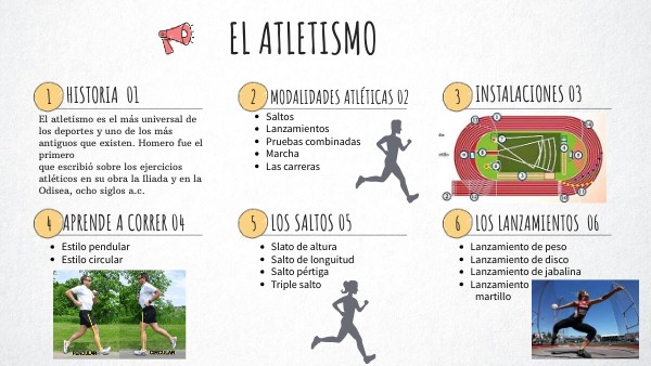 El atletismo es el más universal de los deportes y uno de los más antiguos que existen. Homero fue el primero que escribió sobre los ejercicios atléticos en su obra la Iliada y en la Odisea, ocho siglos a.c.