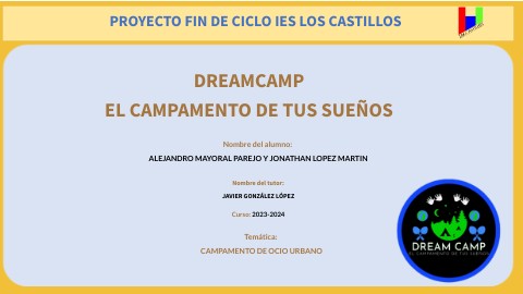 "DREAMCAMP: Campamento de ocio urbano orientado para niños de 10-16 años" Ofrecemos este campamento a los institutos IES LOS CASTILLOS, IES ITACA Y IES JOSEFINA ALDECOA. Para desarrollar todas las actividades elegidas, contaremos con la colaboración de diferentes empresas, Sapiens, Dance and smile, Action live, Climbat y Bowling tres aguas. Decidimos realizar este trabajo, con el fin de elaborar y diseñar un campamento alternativo basado en las actividades de ocio urbano. Fomentando la práctica deportiva mediante actividades innovadoras y adaptadas, con el objetivo de mejorar la salud y la calidad de vida. La metodología usada en este campamento es de descubrimiento guiado y aprendizaje por juegos, en la cuál daremos indicios a los alumnos para que puedan llegar a la solución por sus propios medios. Este proyecto se resume en una semana de actividades de ocio urbano (Escalada, bolera, paintball, baile, hallroom, veladas y roadbook) Como recursos materiales, hemos creado un genially con toda la información del campamento, carteles publicitarios para promocionarnos, vídeos explicativos, encuestas para obtener las opiniones de los participantes, roadbook, tablas de clasificación, tarjetas de personajes para la velada de mímica, documentos de inscripción al campamento, autorizaciones, cronograma de actividades y redes sociales.